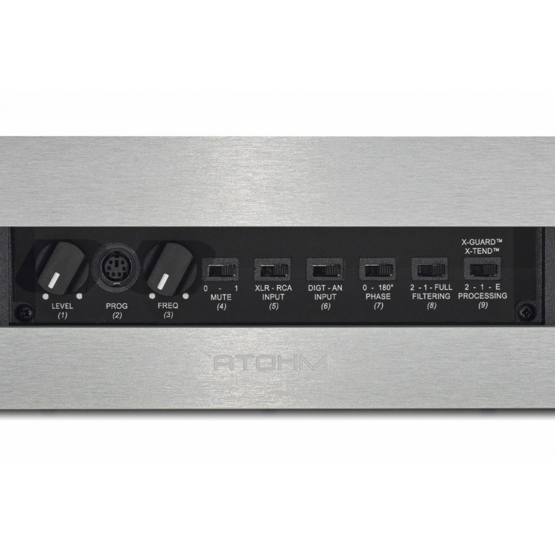 Tous les modes bénéficient d'un filtrage passe-haut numérique activable sur les sorties enceintes avec trois fréquences de coupure au choix (60, 80 ou 100 Hz) et des pentes réglables à 12 ou 24 dB par octave. Ce filtrage soulage efficacement les enceintes dans le registre grave. Deux sorties subwoofer sur prises XLR délivrent simultanément un signal filtré en passe-bas à 350 Hz avec une pente de 12 dB par octave. Le niveau de ces sorties peut être réglé entre -60 et +8 dB par rapport au signal principal et la phase peut être ajustée sur 180 degrés, permettant ainsi une intégration optimale du grave dans l'espace d'écoute.