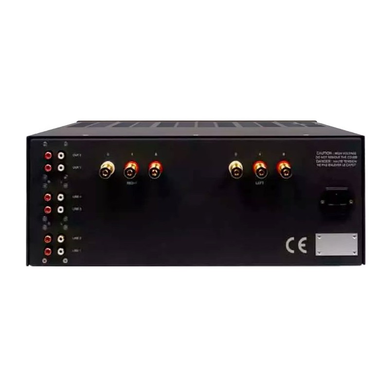 Cet amplificateur est livré de série avec une télécommande en aluminium permettant un réglage précis du volume. Il est équipé de 4 entrées ligne en RCA et de deux sorties. Son double bornier permettra d'effectuer le bi-câblage si cela s'avère nécessaire pour les enceintes. Côté esthétique, l'Aria dispose d'un châssis noir et d'une façade en plexiglas fumé qui laisse transparaître les tubes lorsqu'ils sont allumés. La finition est solide et exemplaire. L'amplificateur repose sur trois pointes qu'il conviendra de poser sur un support en bois de préférence (bambou, hêtre).