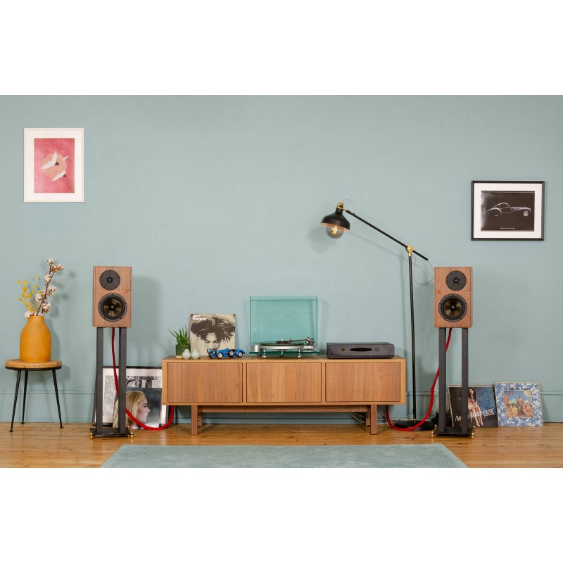 Esthétiquement, les Revival Audio Atalante 3 allient tradition et touche contemporaine. Avec leur finition plaquée bois, disponible en noyer ou ébène, elles s'accorderont avec une multitude d'intérieurs. Des détails tels que le liseré de séparation horizontal et les deux caches gris ajoutent une touche d’élégance. Elles disposent également de leurs pieds dédiés, disponibles séparément : Revival Audio Stand 3.