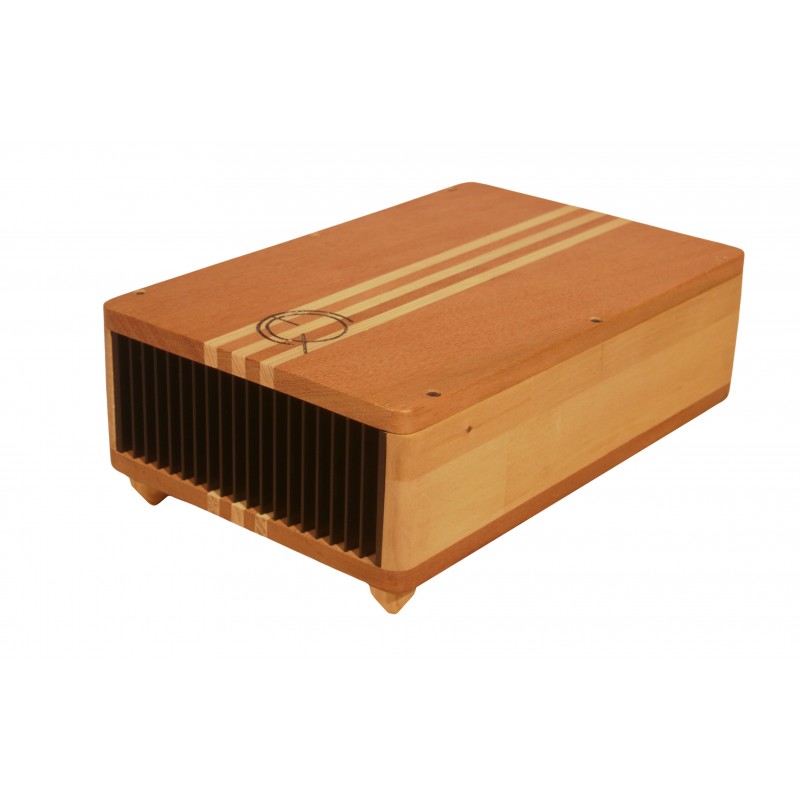 Dans les ateliers EQaudio situés en Haute-Savoie, chaque paire d'enceintes EQ4 bénéficie d'une fabrication artisanale minutieuse. L'assemblage complexe de 34 pièces de bois nobles (Épicéa, Kapur et Meranti) témoigne d'un savoir-faire unique dans la construction d'enceintes haut de gamme. Cette conception en bois massif assure un contrôle naturel des vibrations, éliminant le besoin de matériaux amortissants qui risqueraient de dénaturer la qualité sonore. La reproduction acoustique de l'EQaudio EQ4 repose sur un haut-parleur large bande premium de 11 cm avec membrane bambou. Le large bande est linéarisé par un filtre passif pour obtenir un timbre doux et juste. Les EQaudio EQ4 sont faciles à alimenter, grâce à un module d’impédance qui ne descend pas en dessous de 8 Ohms, assurant une compatibilité optimale avec les amplificateurs hi-fi de qualité à partir de 30 Watts.
