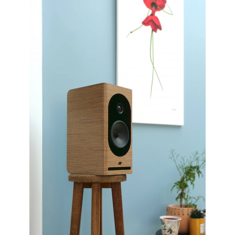 L'esthétique de la Lucia MKII marque une nouvelle étape dans le design JMR, avec l'introduction d'une nouvelle signature visuelle moderne de la marque : la finition Woodscore noir satiné. Cette finition allie subtilement sobriété contemporaine et caractère affirmé, transformant l'objet qui transcende ainsi sa fonction technique pour devenir un véritable élément décoratif. Ses proportions harmonieuses (37 centimètres de hauteur, 18 centimètres de largeur et 23 centimètres de profondeur) s'intègrent naturellement dans tous les intérieurs contemporains. Les chants avant arrondis et la large feutrine acoustique ne sont pas seulement fonctionnels, mais participent également à l'élégance générale du design. Son gabarit compact et sa finition luxueuse en font la solution idéale pour les salons de petite à moyenne taille, où elle saura s'imposer avec discrétion tout en affirmant sa présence raffinée.