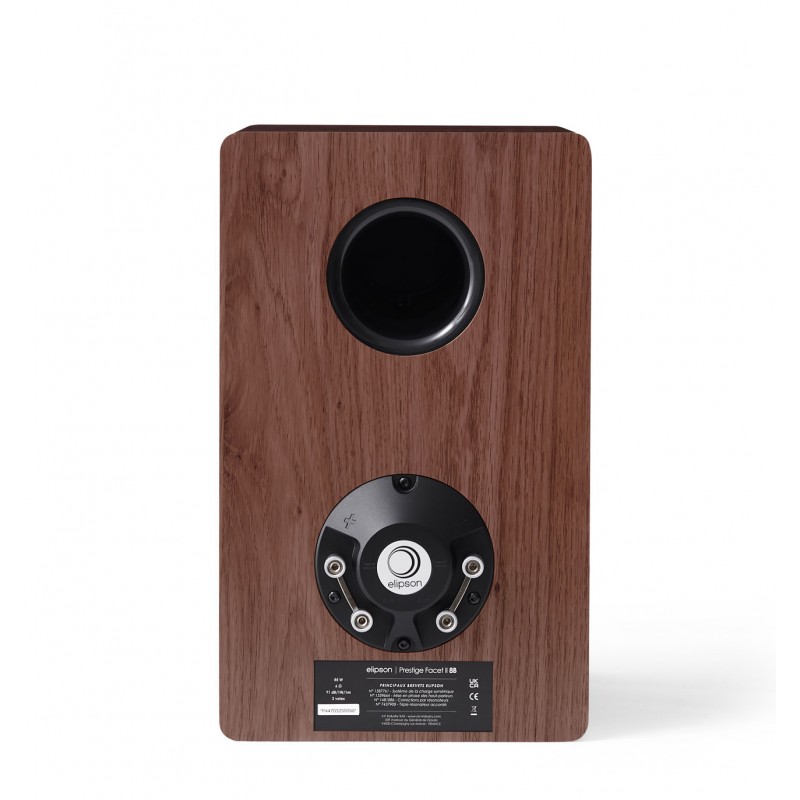 L'esthétique des Prestige Facet II 8B reprend l'élément distinctif de la gamme : une couronne à facettes en gomme synthétique entourant chaque haut-parleur. Outre son impact esthétique, cette caractéristique visuelle remplit une fonction acoustique en réduisant les effets de baffle. Le coffret en MDF bénéficie de renforts internes qui améliorent sa rigidité par rapport au modèle précédent et contribuent ainsi à un meilleur contrôle des résonances. Les différentes finitions proposées permettent une intégration harmonieuse dans différents environnements d'écoute. Les proportions compactes de ces enceintes bibliothèque facilitent leur placement sur des étagères ou des pieds dédiés. Le double bornier plaqué argent accepte différents types de connexions et permet le bi-câblage pour les utilisateurs souhaitant optimiser leur installation.