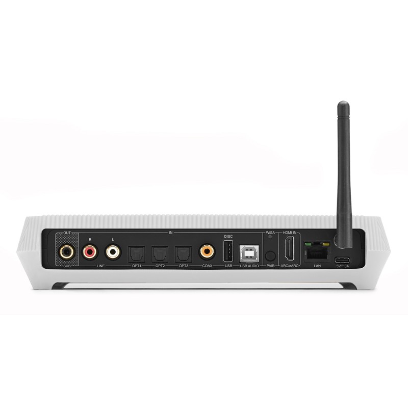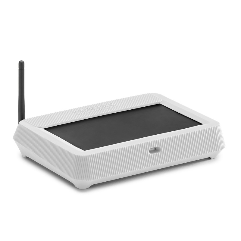 Le cœur du système est le transmetteur réseau Stéréo Hub 2, véritable centre névralgique qui exploite la technologie WiSA pour assurer une liaison totalement sans fil entre les enceintes. Cette transmission haute résolution, exempte de latence perceptible, reproduit le signal audio dans son intégralité. Toutes les sources (télévision, lecteur CD, platine vinyle, etc.) peuvent être connectées directement au Stéréo Hub 2, ce qui libère le placement des enceintes actives de toute contrainte technique et permet une intégration discrète dans n'importe quel environnement. La connectique filaire du Stéréo Hub 2 est particulièrement complète, avec trois entrées optiques, une entrée coaxiale, une entrée USB-B pour ordinateur, une entrée USB-A pour disque de stockage et une entrée HDMI eARC compatible CEC pour le raccordement au téléviseur. Les sources analogiques disposent d'une entrée RCA stéréo. Un port RJ45 assure une connexion réseau stable pour les services de streaming en ligne, tandis qu'une sortie dédiée permet d'ajouter un caisson de basses entièrement paramétrable depuis l'application Triangle Capella. Le processeur Cortex A53 Quad-Core cadencé à 1,5 GHz confère au système une réactivité immédiate pour toutes les opérations.