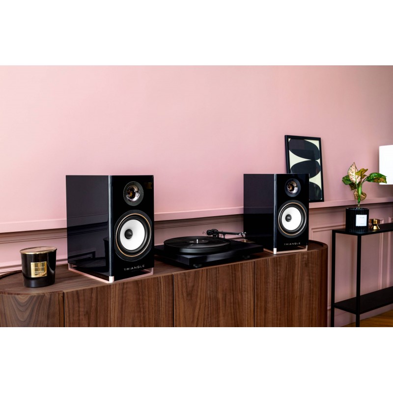 L'écoute des enceintes Triangle Capella 2 révèle une scène sonore spacieuse et précisément délimitée, dans laquelle chaque élément musical trouve naturellement sa place. La bi-amplification en classe D associée à un filtrage actif offre une restitution cohérente et équilibrée. Le tweeter à pavillon diffuse les hautes fréquences avec finesse et ouverture, sans jamais être agressif, tandis que le médium-grave en cellulose naturelle confère aux voix une texture organique. La descente dans le grave est généreuse pour des enceintes bibliothèque de ce format, l'évent bass-reflex orienté vers le sol délivrant des basses fréquences toniques qui soutiennent la musique sans envahir le registre médium. La dynamique est remarquable sur tous les répertoires, du jazz intimiste aux productions électroniques les plus exigeantes, et la puissance disponible permet d'atteindre des niveaux d'écoute élevés sans compression audible. Le système DVS contribue à la propreté de la restitution en éliminant les résonances parasites qui pourraient altérer la perception des détails musicaux.